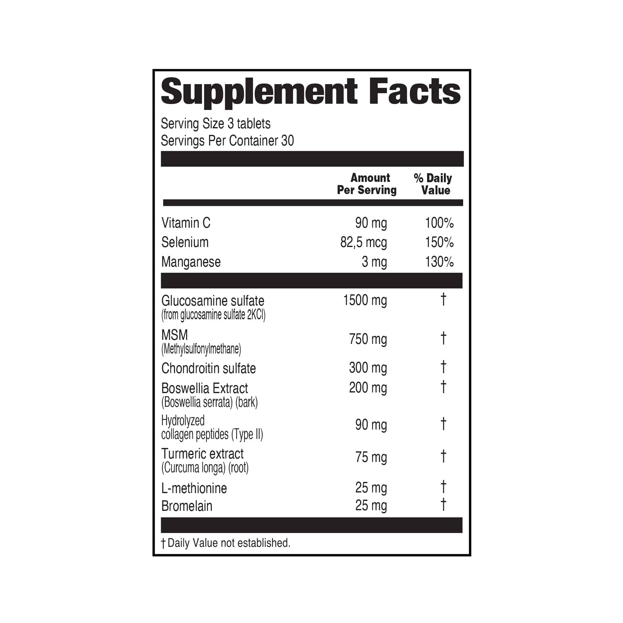 This supplement is intended to help support joint health*, especially for those engaging in intensive exercise, experiencing occasional joint discomfort*, or wishing to maintain an active lifestyle as they age*. Always consult a healthcare professional before starting any new supplement.